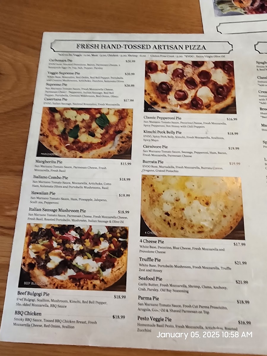 Pizza Pie Menu